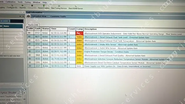 - 3232 – Aftertreatment 1 Intake NOx Sensor – Abnormal Update Rate → cause probable : contrôleur NOx amont hors-ligne ou trame CAN intermittente (chauffage capteur, +12V/masse, bus CAN perturbé).